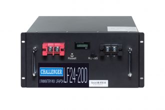 Акумулятор Challenger LiFePO4 24-200 розроблений для використання в альтернативній енергетиці, джерелах безперебійного живлення, системах безпеки, медицині, системах зв'язку і т.д. Кількість циклів > 2000 циклів при DOD 100%. Напруга заряду: 29.2V. Габарити (ДхШхВ): 482х400х222мм. Вага 55кг.