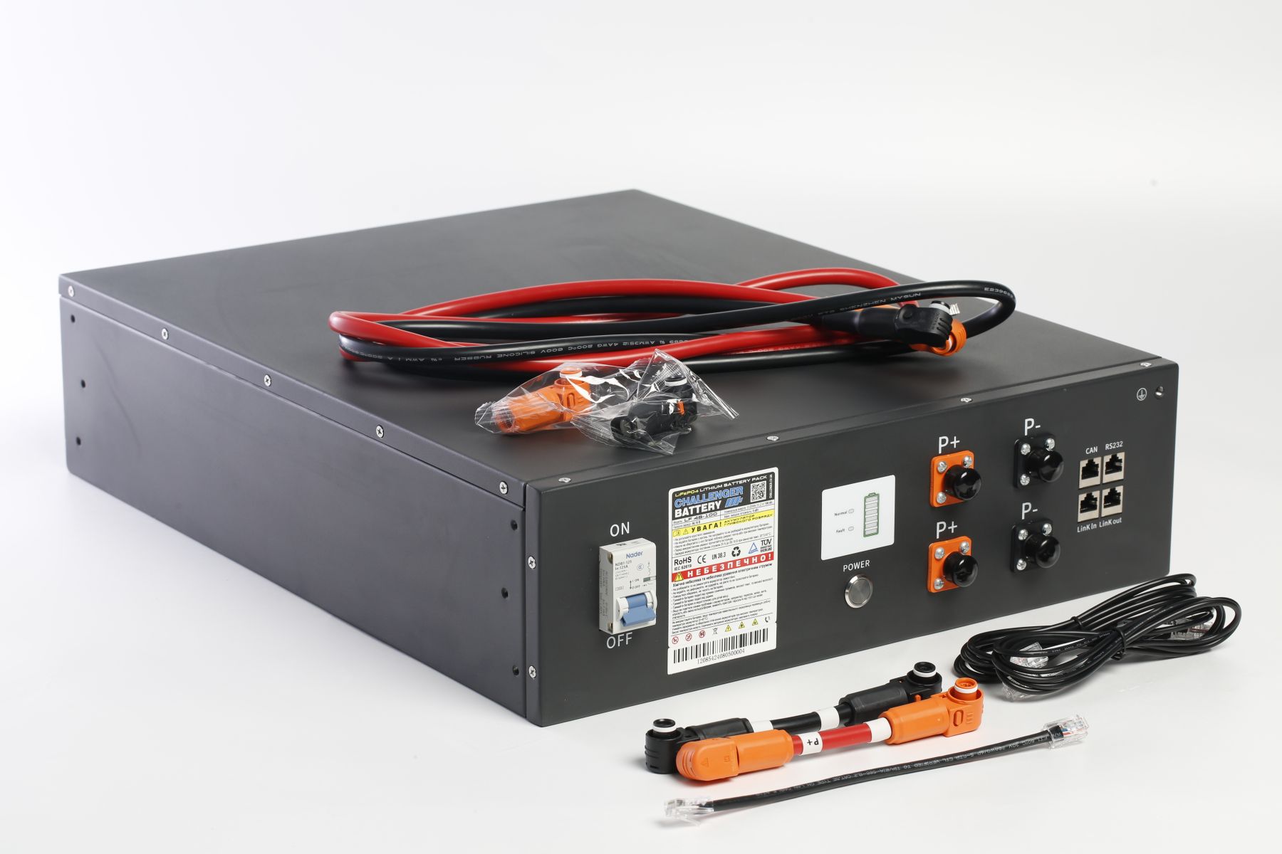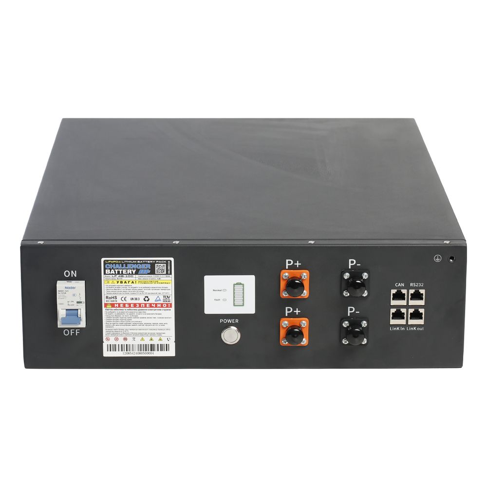 Литий железо-фосфатный аккумулятор Challenger LF48-100 (LiFePO4) емкостью 100Ач и номинальным напряжением 51.2V. Обладает высокой плотностью энергии, отсутствием вредных испарений и служат надежным и мощным источником электрической энергии. Различаются большим сроком службы по сравнению с традиционными свинцово-кислотными аккумуляторами. Мы рекомендуем их для использования, где важен высокий срок службы, компактность, малый вес, высокая емкость и надежность.