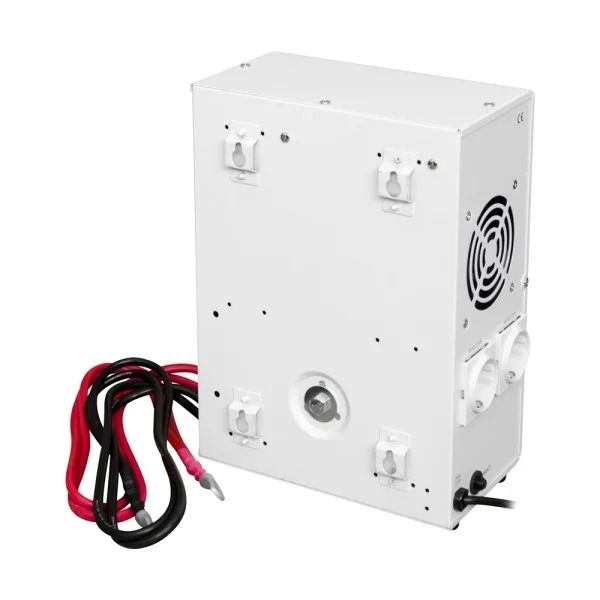 В компактном корпусе устройство состоит из трансформатора, стабилизатора напряжения, инвертора напряжения, зарядного блока, блока защит, платы управления на базе 32-битного высокоскоростного контроллера, табло индикации режимов работы, системы охлаждения. Для обеспечения гарантированного или автономного электроснабжения к устройству необходимо подключить аккумулятор 12В (аккумулятор не входит в комплект поставки).
