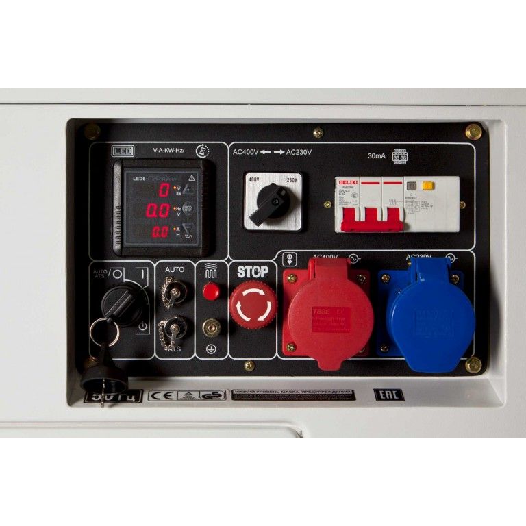 Панель управления генератора - полностью обновленный цифровой дисплей не только информационный, а в первую очередь выполняет функцию надежной защиты генератора от перегрузок, а также защищает подключенных к генератору потребителей от таких неприятностей, как скачки напряжения, тока, частоты, и даже предупреждает пользователя о низком заряде аккумулятора.
