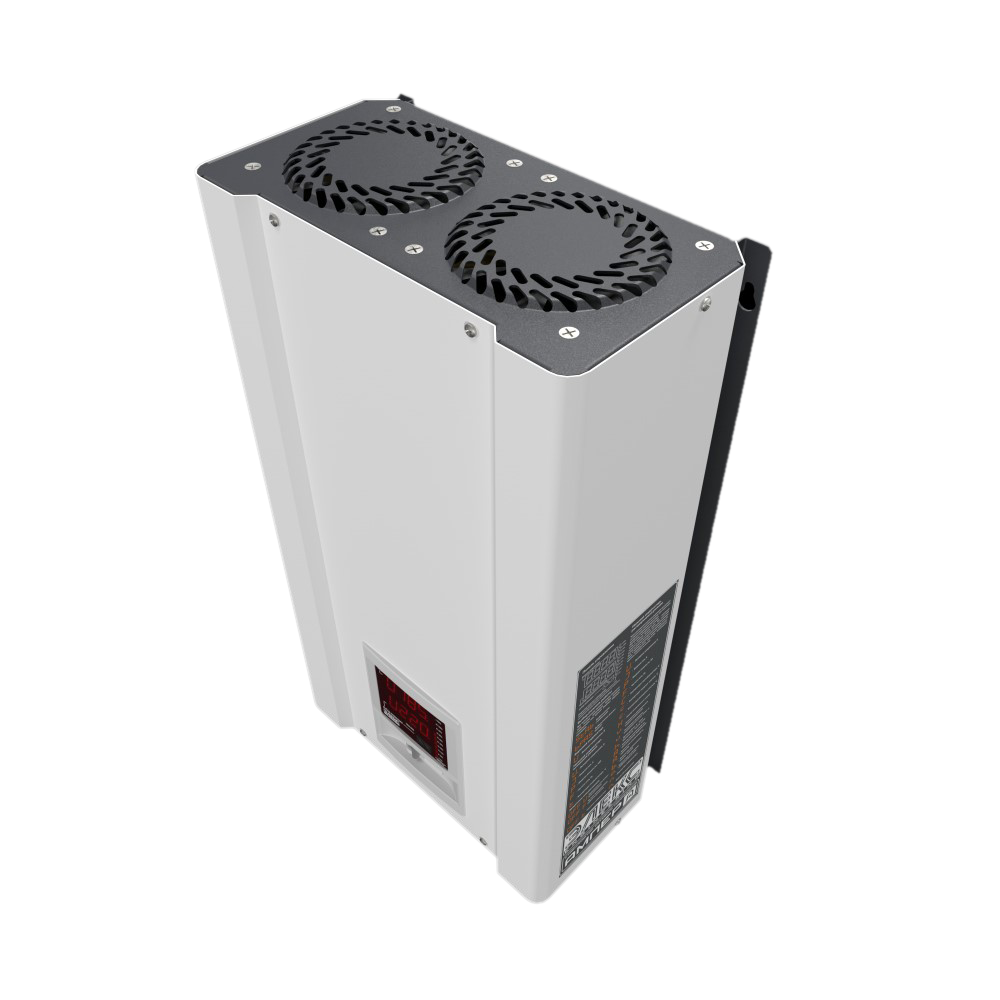 Устанавливать и эксплуатировать стабилизатор Ампер У 9 рекомендуется в сухих и отапливаемых помещениях. Настенную установку рекомендуется производить в вертикальном положении (вентиляторами вверх), оставив сверху и снизу 10-15 см для охлаждения. Подключение осуществляется к существующей проводке через клеммную колодку.