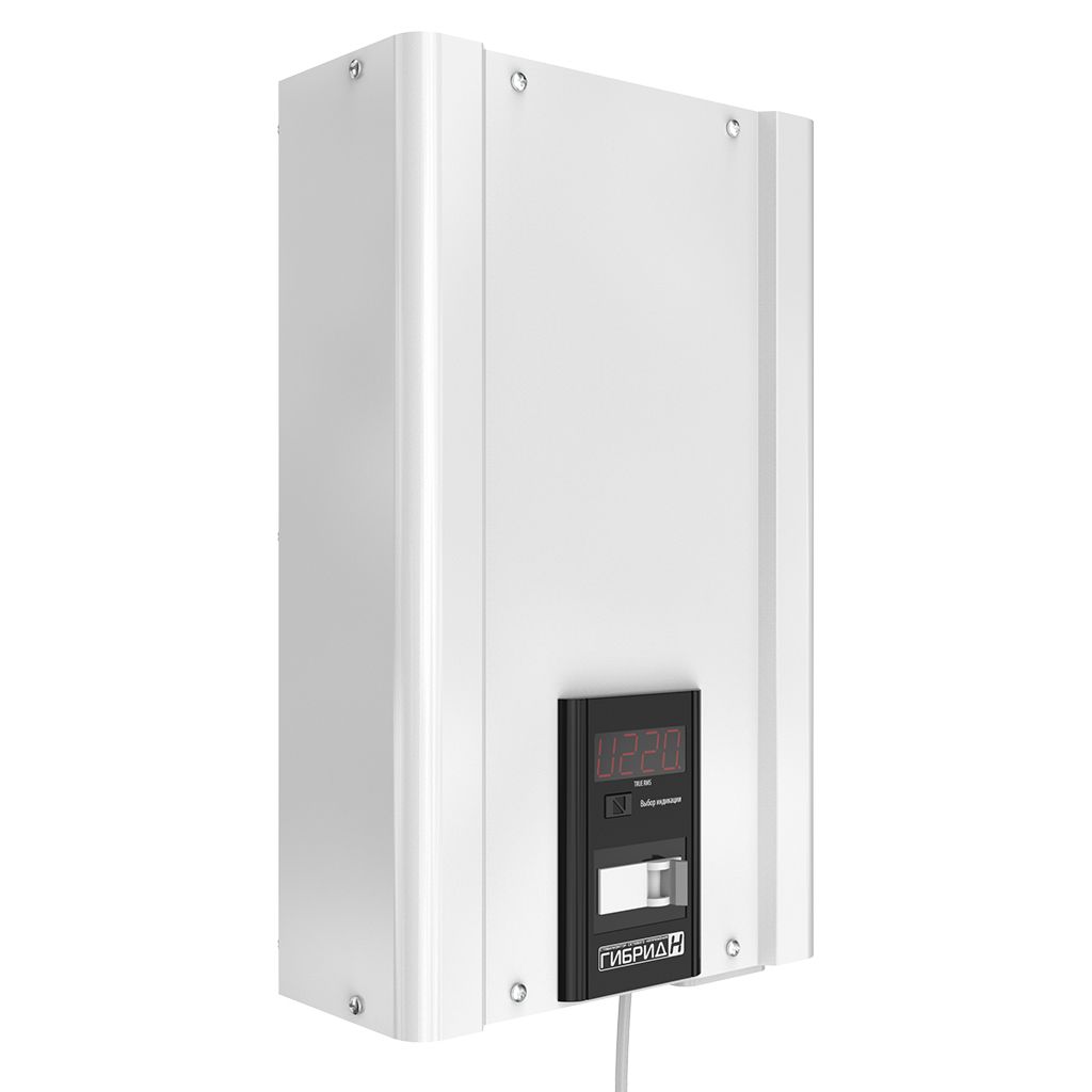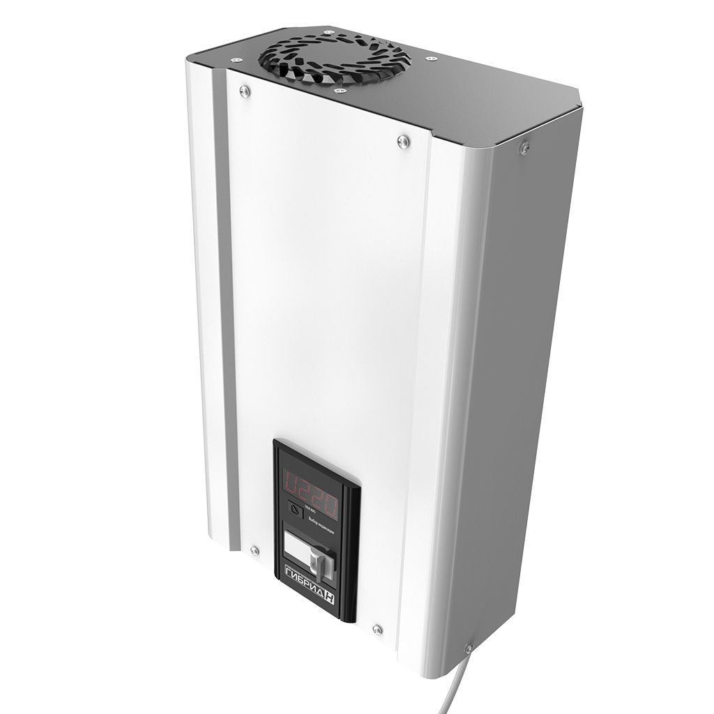 Устанавливать и эксплуатировать стабилизатор Гибрид рекомендуется в сухих и отапливаемых помещениях. Настенную установку рекомендуется производить в вертикальном положении (вентиляторами вверх), оставив сверху и снизу 10-15 см для охлаждения. Подключение производится к существующей проводке через клеммную колодку для аппаратов от 5.5 до 9 кВт и через встроенный шнур с вилкой и розеткой на корпусе стабилизатора для моделей 2.2 и 3.5 кВт.