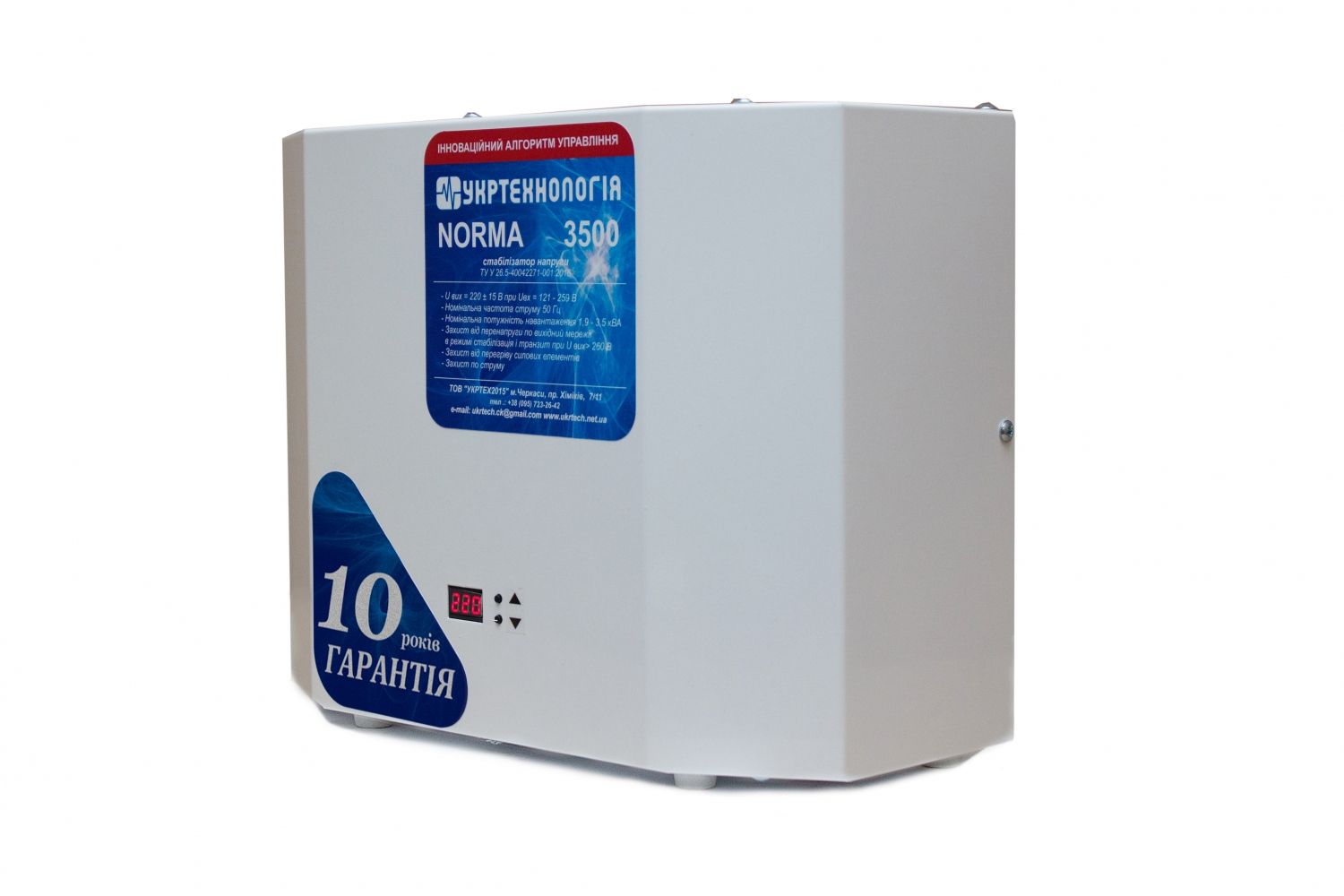 Укртехнология Norma – это качественный прибор украинского производства, который нормализует ваше напряжение и обеспечит защиту бытовой техники от сгорания или нестабильной работы.