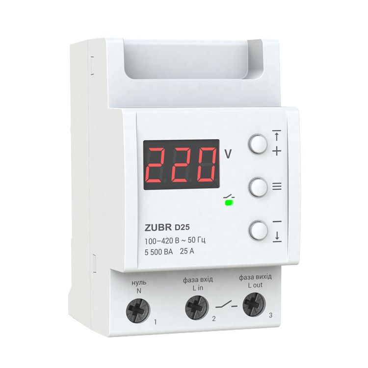 Реле напруги однофазне ZUBR D25 (3 модулі, базовий функціонал)