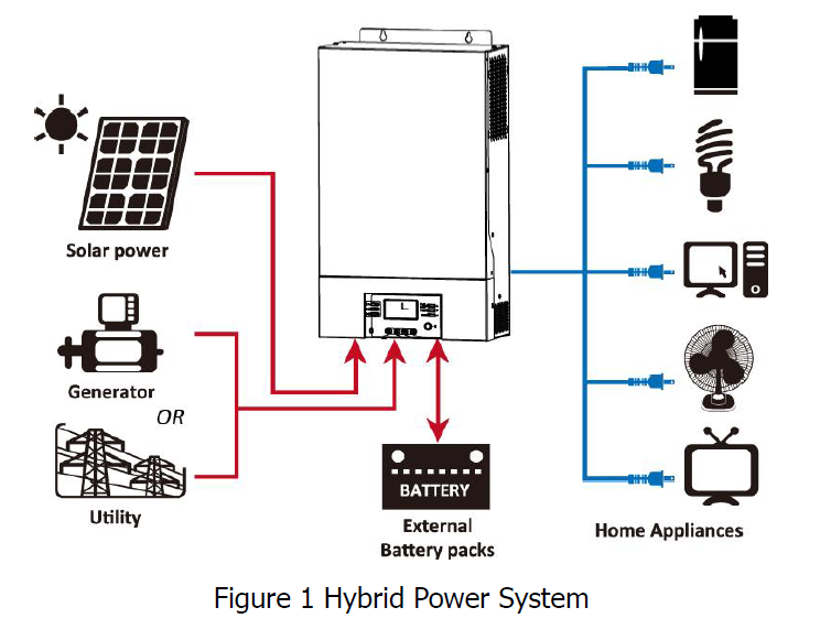 • Настраиваемый приоритетный режим работы от переменного тока / солнца через ЖК-дисплей.