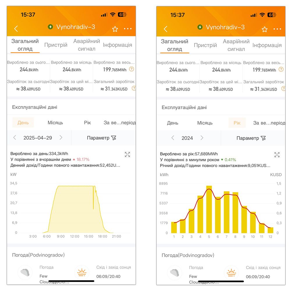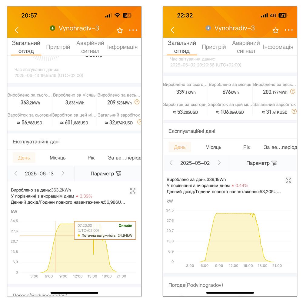 В благоприятных погодных условиях Центральной Европы, в частности в солнечные холодные летние дни, трекер с номинальной мощностью 9 кВт может выработать до 110 кВт·ч электроэнергии в день.
