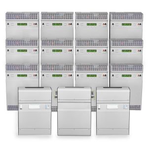 Сумматор мощности Quant - это надежно упакованный в стальной корпус прибор с электроизолированным трансформатором и с клеммами для подключения к нему стабилизаторов и итоговой мощностной нагрузки. Сумматор существует в трехфазном исполнении с блоком контроля фаз. Каждая фаза такого сумматора может объединить четыре стабилизатора мощностью до 14 кВт, получив 56 кВт на фазу или 168 кВт суммарной мощности.